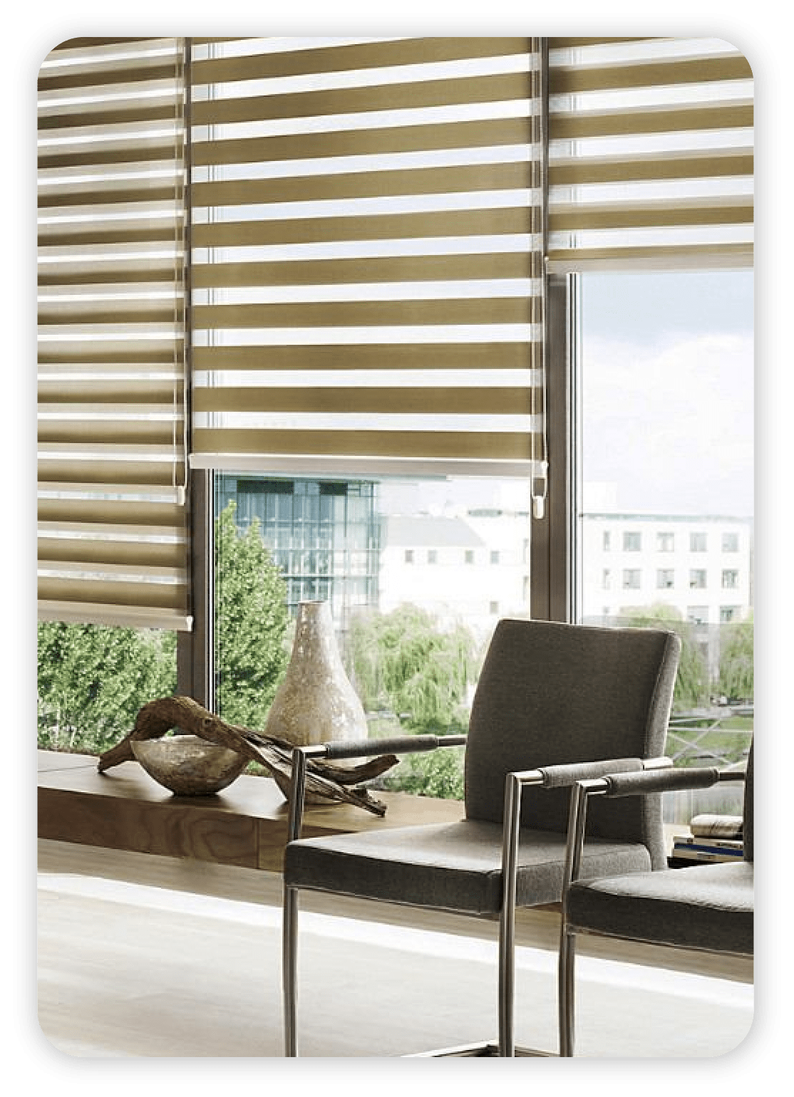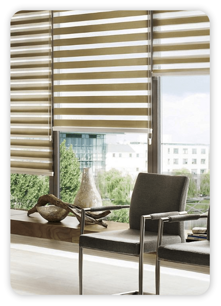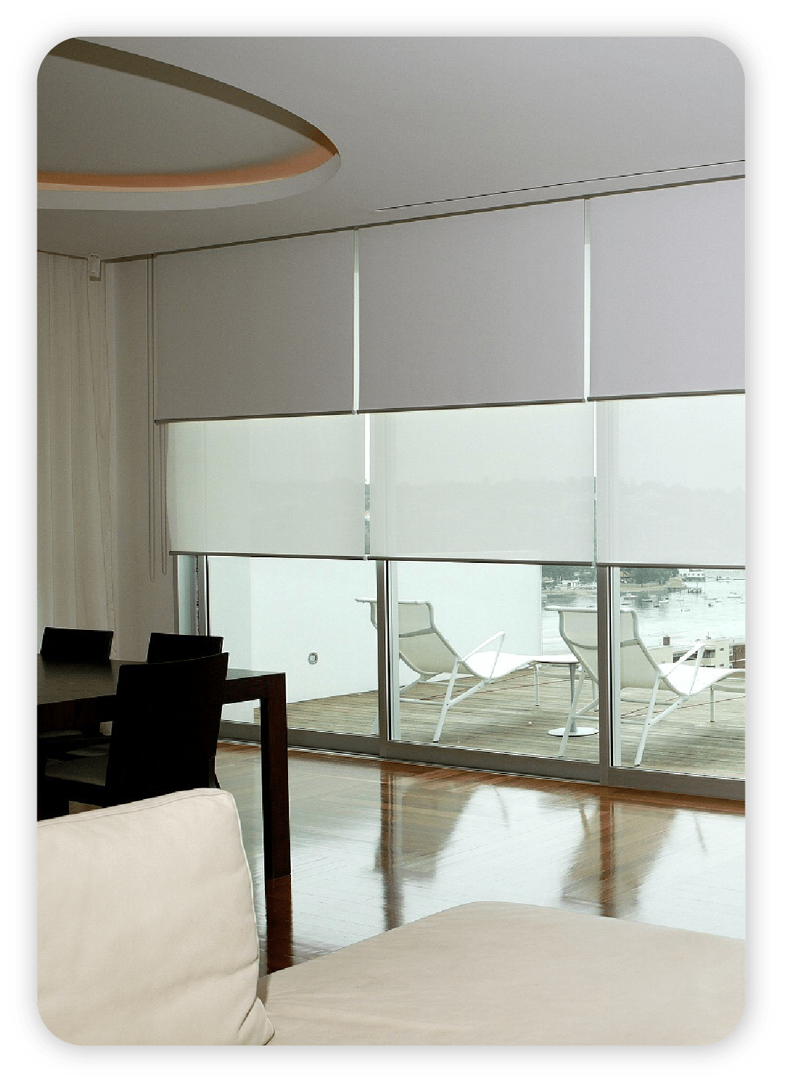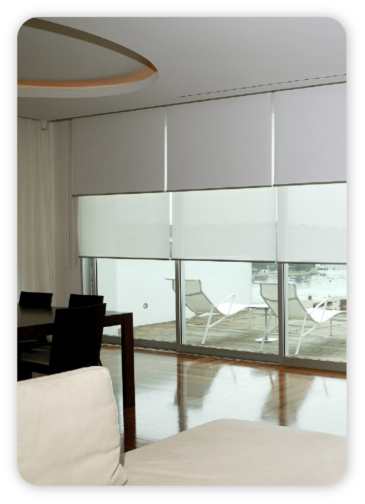 Es el sistema más completo para regular la luz. Funciona con dos tipos de telas en una sola ventana. Una permite obtener luz natural, visibilidad y privacidad durante el día; y la otra brinda la opción de blackout para mayor oscuridad. Además ofrece un control efectivo sobre la temperatura y posee tratamiento ignífugo y doble protección contra los rayos UV.