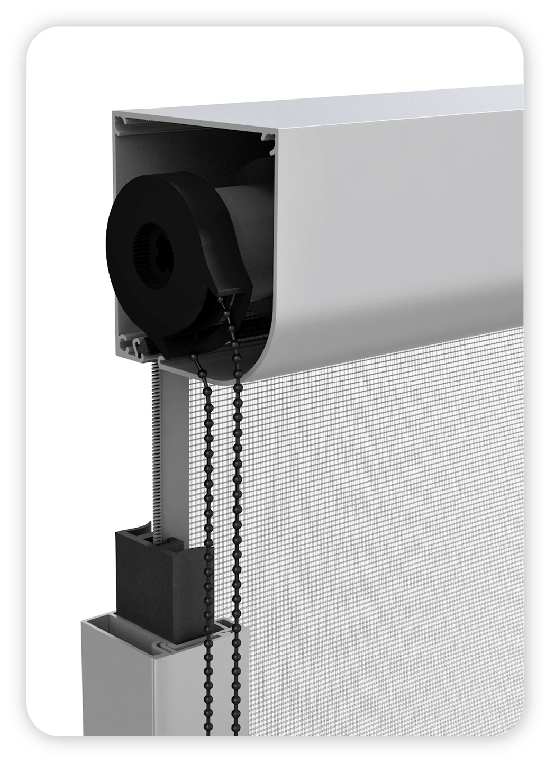 Es un sistema que cuenta con un mini cajón exterior, diseñado para colocar una persiana en una ventana donde nunca hubo una sin dañar la pared. De esta forma permite instalar en un solo paso una abertura integrada a la cortina, al cajón y a sus guías. Proporciona aislamiento térmico, acústico y resiste al agua y al viento.