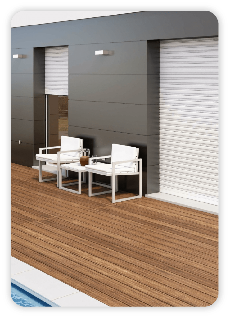 Este tipo de persiana ofrece la mejor protección contra intrusos e intemperie. Su sistema anti-levantamiento garantiza la máxima seguridad ante la entrada de un tercero, además de resguardo contra el viento y la lluvia.